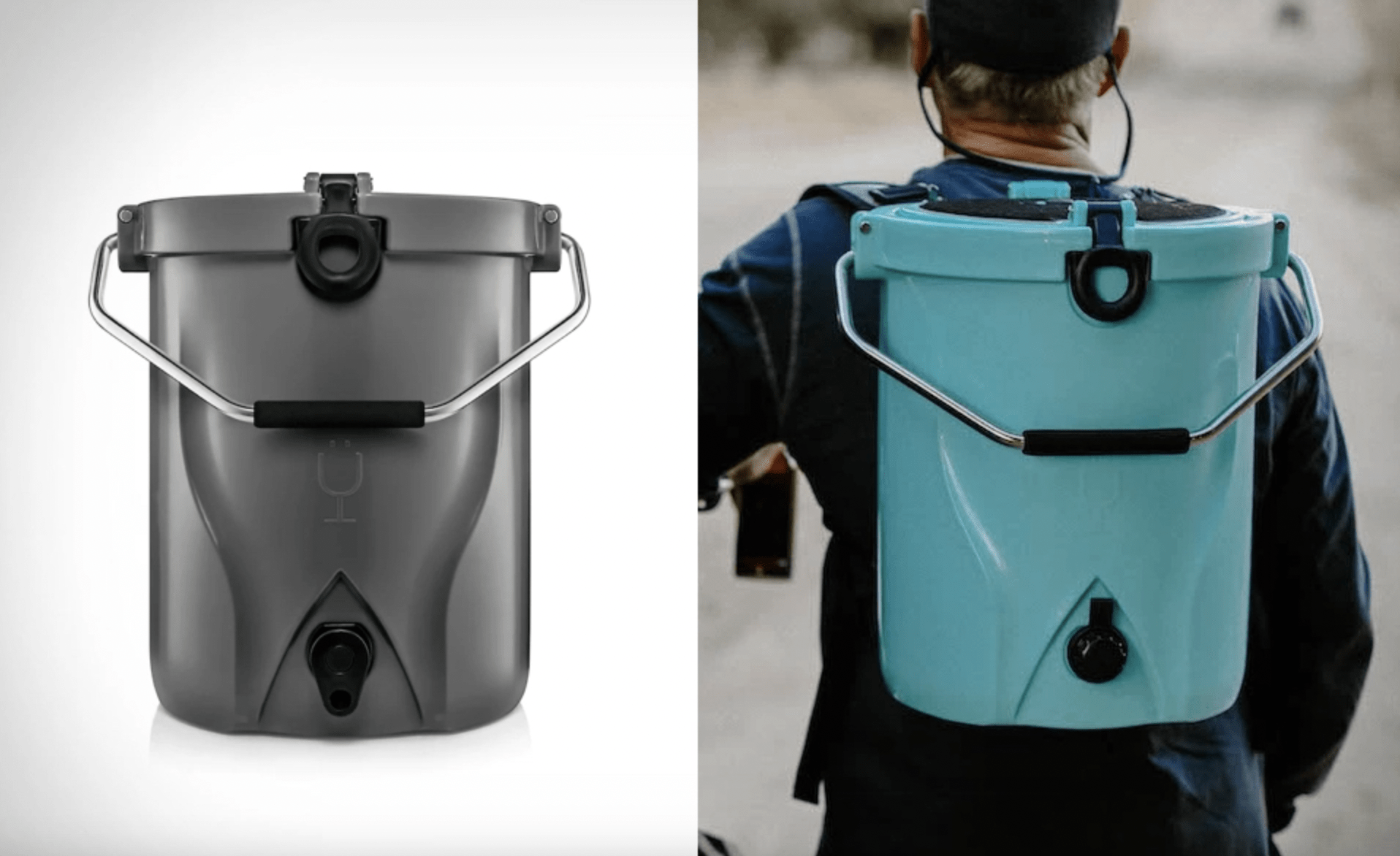 The BruMate BackTap is an hard-shelled backpack cooler with tap at bottom so it can haul and dispense up 3 gallons loose drink, namely beer or other beverage.